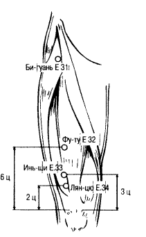 на кожата на бедрото и подбедрицата, болки в долната част на гърба и коленете; ингвинален лимфаденит.